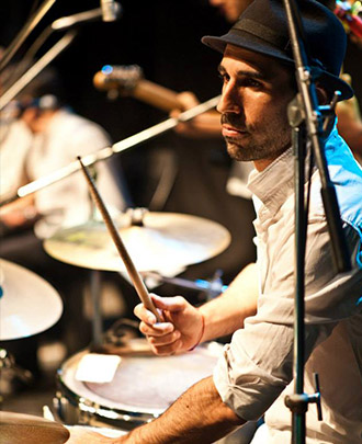 Jerónimo has always joined different bands with different musical styles: folk music, pop, funk, and soul (Tía Flor, Bayas –Ecuador-, Astom). He usually replaces Horacio López in drums at Cuartoelemento. Between 1999 and 2002, he was a member of the band Monotributo, together with Rubén "Mono" Izarrualde and Eduardo Pandolfo. He continued perfecting his musical talent with Norberto Minichilo –whom he shares stages today-, and Cristian Judurcha who is his current instructor. This talented drummer was also a member of Revelados (Gustavo Kupinsky, Facundo Farías Gómez, Pablo Guerra, Jonathan Cuellas and Patricio - Los Caballeros de la Quema’s ex keyboardist).